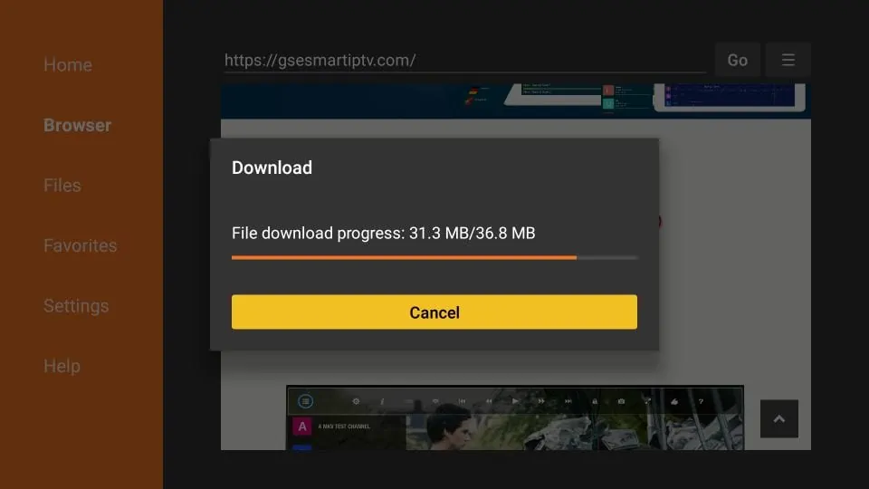 4. Downloader connects to the online file location and starts to download the GSE Smart IPTV APK on FireStick. This takes a couple of minutes.