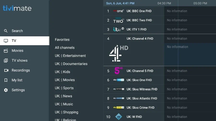 If you don’t see an EPG enabled in the TiviMate app, consider enabling it in the app’s Settings.